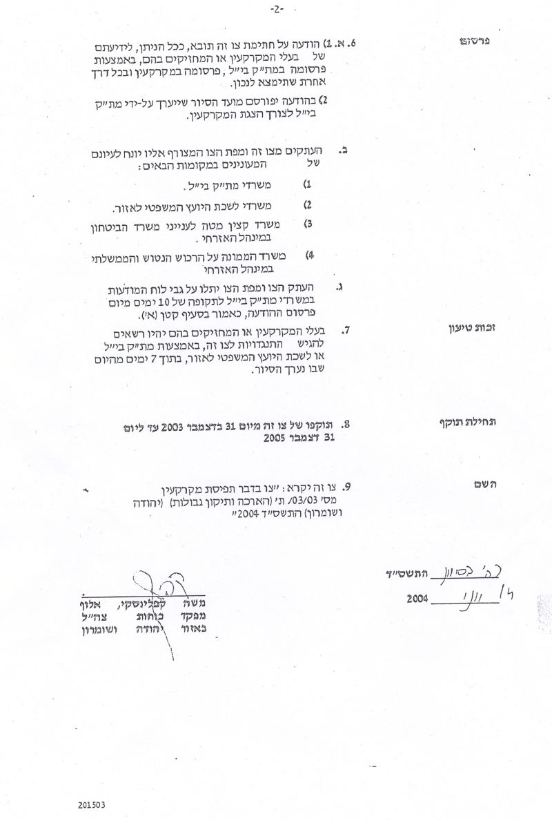 8. The name of this order is: '' Order to seize lands n0 03/03/T (Judea & Samaria ) 2004