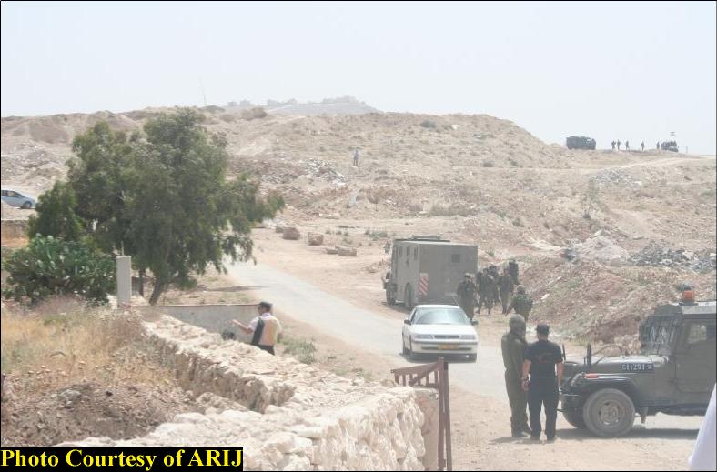 Follow up to the case study published earlier on ARIJ website sighting the Israeli settlers' plan regarding the Ush Ghrab location east of Beit Sahour, the Israeli settlers raided the targeted site on May 15, 2008 under the protection of the Israeli Army to declare their possession of the Ush Ghrab location to establish a settlement there. Dozens of settlers arrived at the site early in the morning with the Israeli Army who declared the Ush Ghrab area as a closed military location denying any Palestinians access to the threatened site and placed a mobile caravan. The entrance to the targeted location is now not permitted and a military post is rigged at the top of the road leading to the site.
