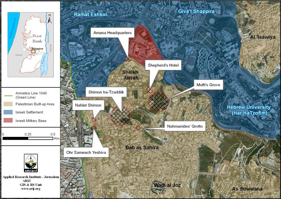 The location of some of the Israeli settlemnet plans in Ash Sheikh Jarrah Neighborhood