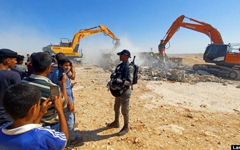 At about nine in the morning, a force of the occupation army and the so-called Border Police, and workers from an Israeli civil company, accompanied with three heavy machineries (a bulldozer and two diggers), stormed the village, and arrived at the citizens’ houses, then surrounded them and prevented the citizens from approaching the place, therefore, the workers accompanying them expelled the luggage, belongings and possessions from the houses were dumped in the open, then the machineries demolished the following houses: