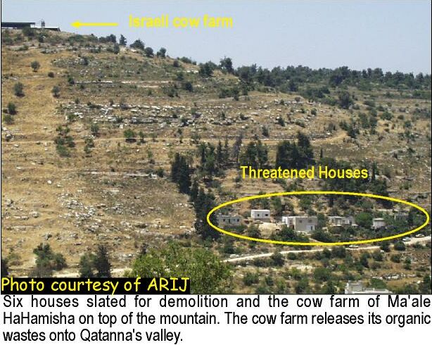 Qatanna has been targeted repeatedly by Israelâ??s house demolition policy. Since the 1980â??s scores of houses have been demolished. In 1997, nine houses were demolished within a two-month period (see map).