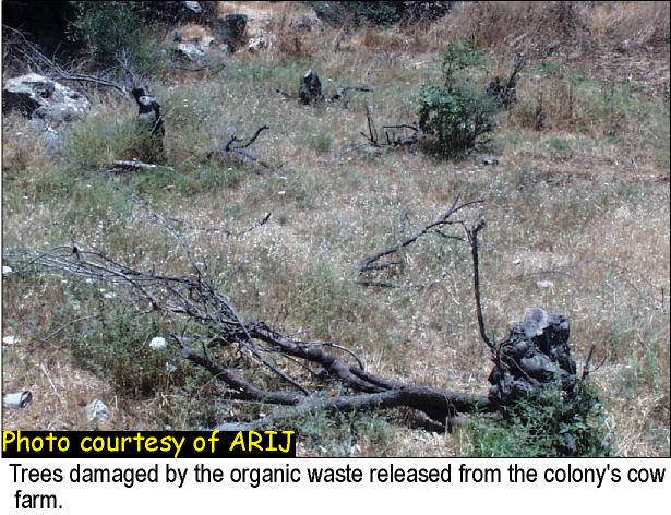 However, Qatanna's suffering did not stop at the loss of land. During the period between 1948 and 1967 settlers from nearby settlements across the 1949 Armistice Line threatened and harassed the villagers. In 1967, old olive trees were uprooted from Qatanna and replanted near Nabi Samuel. In 1985 there was another such campaign. Organic waste from an Israeli cow farm in Maale Khamisha was released onto Qatanna lands. The wastes have polluted the ground water so that the village council had to build a treatment plant and test the village well periodically (see photos 1 & 2).