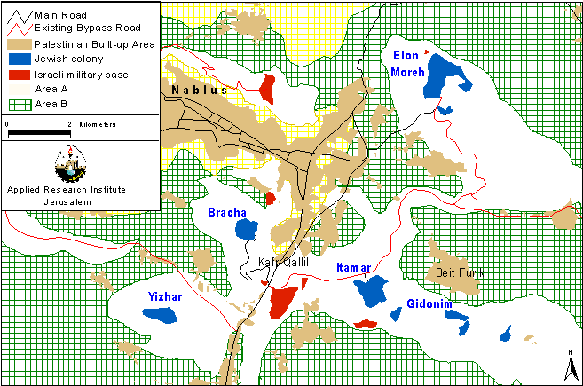 Khillat Al Ward – Beit Foreek, 10 km to the east of the city of Nablus, is where the latest assault took place. The population of the village stands at about 9000 inhabitants in an area of about 47000 dunums. About 18000 dunums of this land were designated as closed military areas used for Israeli army's training purposes in addition to the confiscation of tens of thousands of dunums used for the establishment of the nearby Elon Moreh and Itmar settlements; see map .