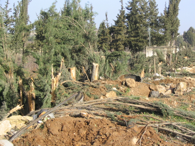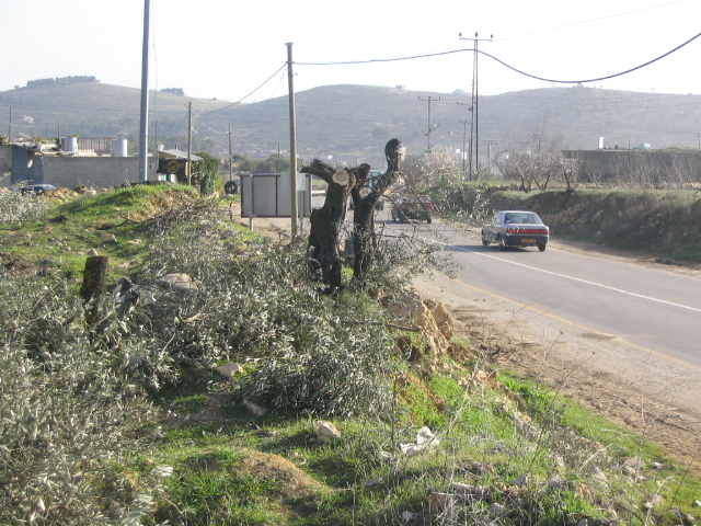 On February 24th, 2004, the Israeli army personnel cut the aforementioned trees with electric saws and forced owners to remove all the wood.
