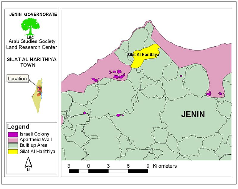 The newly constructed Segregation Wall was built on a ''2 km long'' land to the west of the town. See map of Silat Al Harithiya