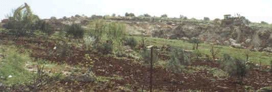 Wadi Shubash-Metulla- Jenin: Israeli large hammers and bulldozers leveling the land and uprooting trees for Wall construction purposes, Photo courtesy of LRC.