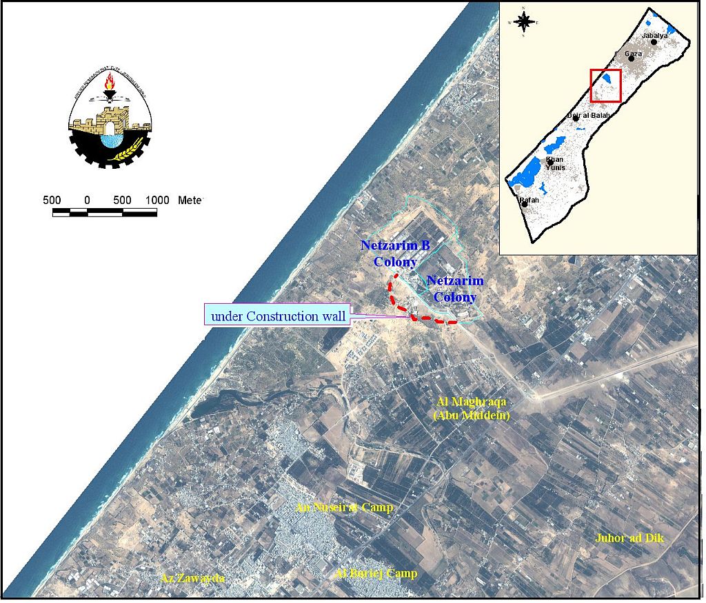 The confiscation will actually result in isolating 300 dunums of agricultural lands belong to the Islamic Waqf in Gaza and located between the security wall and the Netzarim settlement. According to ARIJ GIS data analysis, the Wall which is currently in its first stages of construction is going to be 1400 meters long; thus opposing Israeli declarations of '560 meter long' Wall. Families were given seven days to appeal to the Israeli Supreme court. See map of Wall