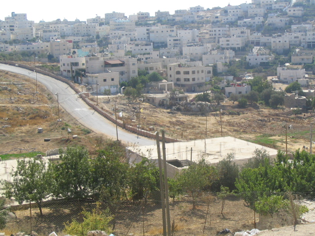 Actually, the first part of this road which is named by Israelis ' the prayers road ' has been finished last year at the length of 200 meters and width of 10 meters. This section of the road was built on four dunums of land confiscated from Mr. Mahmud AbdulHalim Jaber, 75 years old. It extends from the south western gate of Kiriayt Arba' down to the beginning of Jaber quarter and crosses the current road which goes down to the mosque through the Rajabi quarter. A wall was also constructed along the southern side of the road to separate Palestinians from their lands on the northern side of the road in the area of Biyar Al Mahawer. See Photo 1