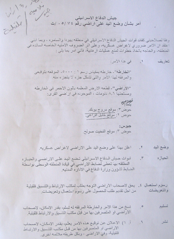 The aforementioned military order was objected by lawyer Fat-hi Shubaita on behalf of the affected people, but yet to no avail.