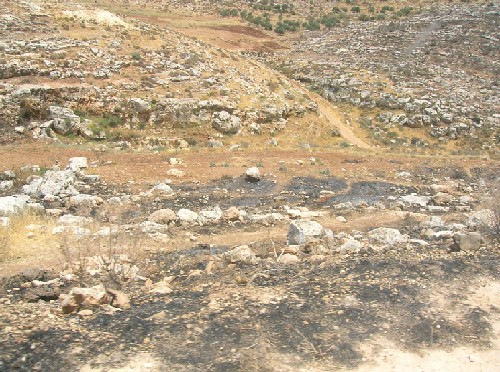 Photo 1:  part of the lands burned by the Israeli army in Kherbit Tana, Photo