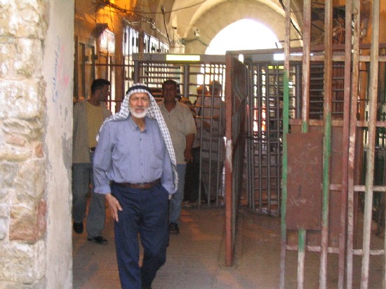 In the religious field, prayers have to pass through a series of iron metal detector gates upon entering into the mosque. This long process could take up to half an hour to reach the mosque. Prayers have to queue in lines in front of the gates and wait for permission from soldiers to enter into the gates for checking one by one. Some times, people are stuck inside the rolling gate waiting for the solider to press a button to allow access. This humiliating process only leads to an increase in the level of anger and tension amongst Palestinian prayers and residents of the area. In certain Jewish anniversaries and religious celebrations, the Ibrahimi Mosque Mu'azin (one who calls for praying) is prohibited from performing his task. Some times, this ban could last for many days and nights.