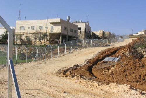 Kiriayt Arab'a and Givat Kharsina) – ( : a section of the Wall being built in Ein Bani Salim betweenKiriayt Arab'a and Givat Kharsina) – ( Photo courtesy of LRC ) )