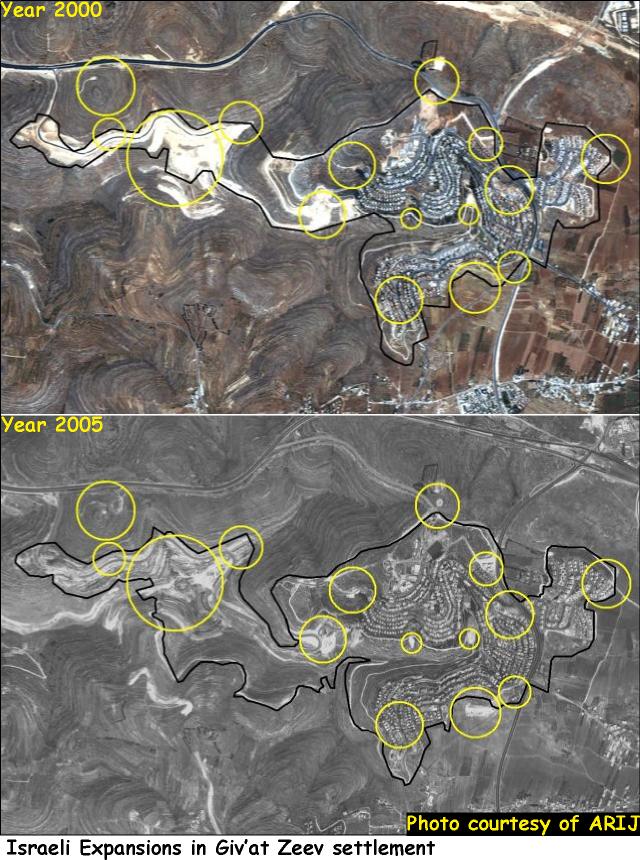 Images below clearly shows the expansion that occurred during the past few years in the settlement of Giv'at Ze'ev.