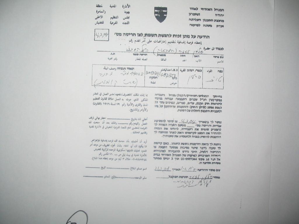 It should be noted that owners of the houses have already started the process of getting a building license for their houses after they received the first demolition warnings one and a half year ago; however, it was rejected by the Israeli authorities for 'security reasons' and the four families were considered as 'illegal residents' in their own houses and therefore must to be evicted.