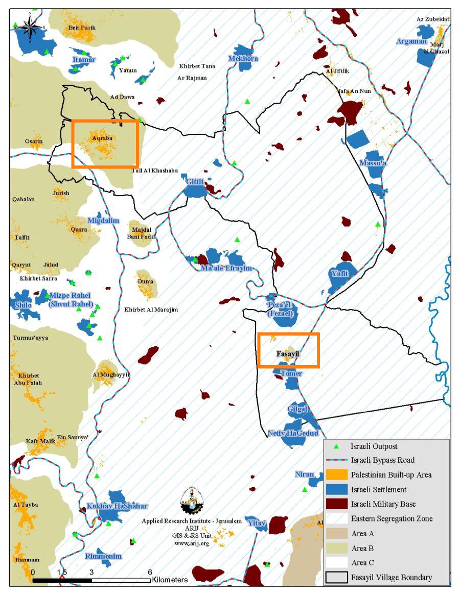 Fasayel, a Palestinian village located in the central part of the Jordan Valley, and just north of Jericho city. It is populated by 900 Palestinians (PCBS 2006) and is set on a built-up area of 194 dunums.