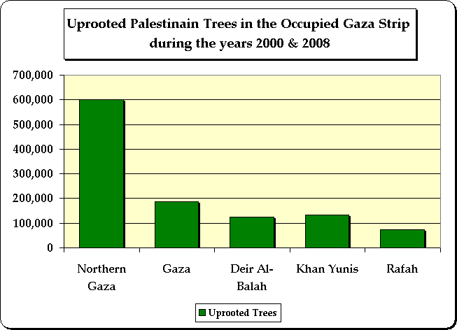 Figure 2: Uprooted Trees in the Occupied Gaza Strip during the period 2000 & 2008