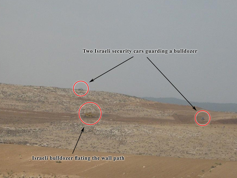 Upon the visit of LRC to the village of Al Ramadien, the Israeli bulldozers were witnessed plowing the lands under heavy protection from an Israeli private guarding company employed by the occupation forces.