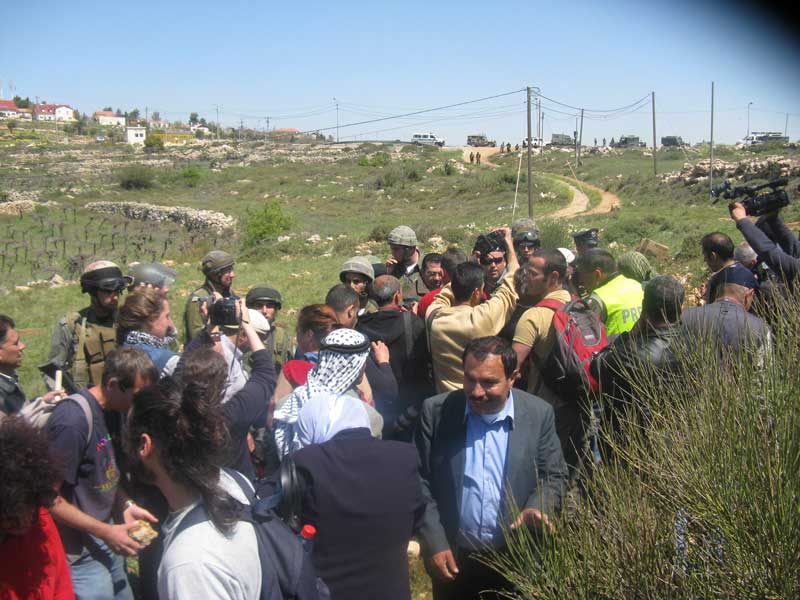 Photos 4+5: Large Israeli forces preventing Palestinian farmers,
