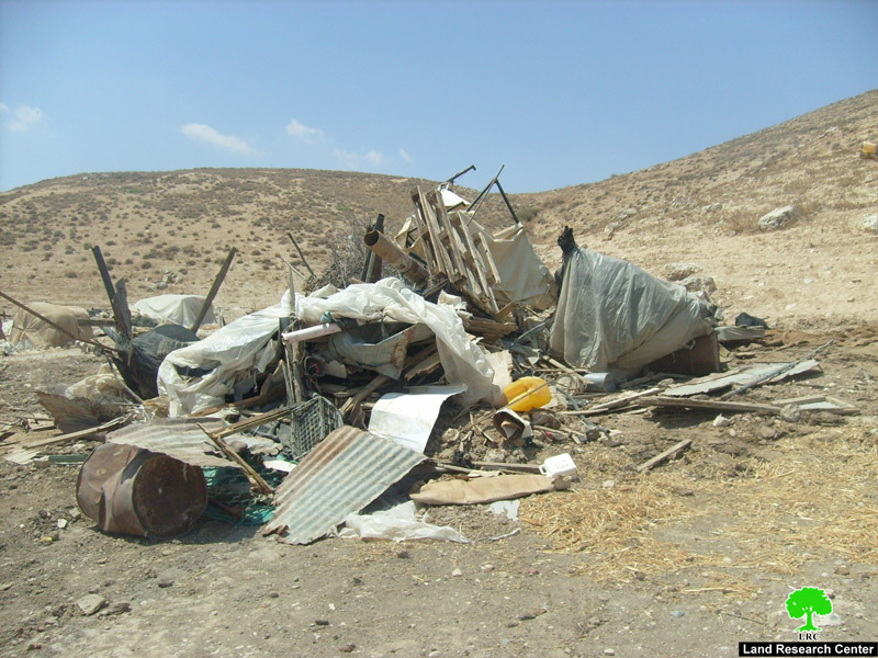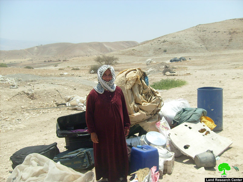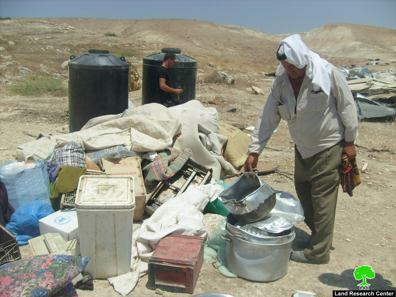 Despite the repeated demolitions and the on-going harassment by the Israeli occupation forces, the residents of Al Farisiyya have reiterated their determination to stay in their land; The 62-year-old Mr. Fa’eq Mustafa Daraghma expressed the following to LRC’s field researcher:  ‘ I’ve been living in the area for tens of years in peace and prosperity. This era ended upon the Israeli occupation of the West Bank in 1967 as Israeli forces have done their utmost to divert the water, land and plant to support the illegal colonies they’ve placed here. This effort was coupled with a deliberate policy of harassment aimed at forcing us out of our land. What type of law allows the illegal colonists to open a road through the Khirbet to be used by them? What law makes it legal for the colonists to place water pipes to steal water from our springs and to connect them directly to the colonies while we, the original owners of the land, are not allowed to get even a drop of water??? Even water pumps that I used to get whatever leftover water from the nearby springs were confiscated in March 2010. To top it all, occupation forces demolished today my shelter and made my family homeless. Yet, despite all that I will keep on staying in my land no matter what. ‘