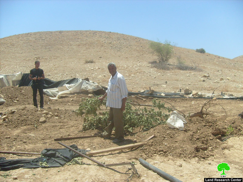 Mr. Ziad Sawaftah (57 years old) owns a farm in Al Farisiyya which was largely demolished during the demolition campaign in the Khirbet. That is despite the fact that the farm was given a license from the occupation forces in 1987. Mr. Sawaftah expressed the following to LRC field researcher: A short while ago an Israeli commander accompanied with soldiers came to my farm and threatened to destroy it .When I showed him the official licensing documents of the farm, he confiscated the papers so I won’t have any means to stop the upcoming demolition. I have invested tens of thousands of shekels in the farm over a 20-year period. It was  the main and only source of income for my family.
