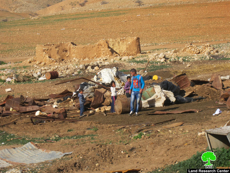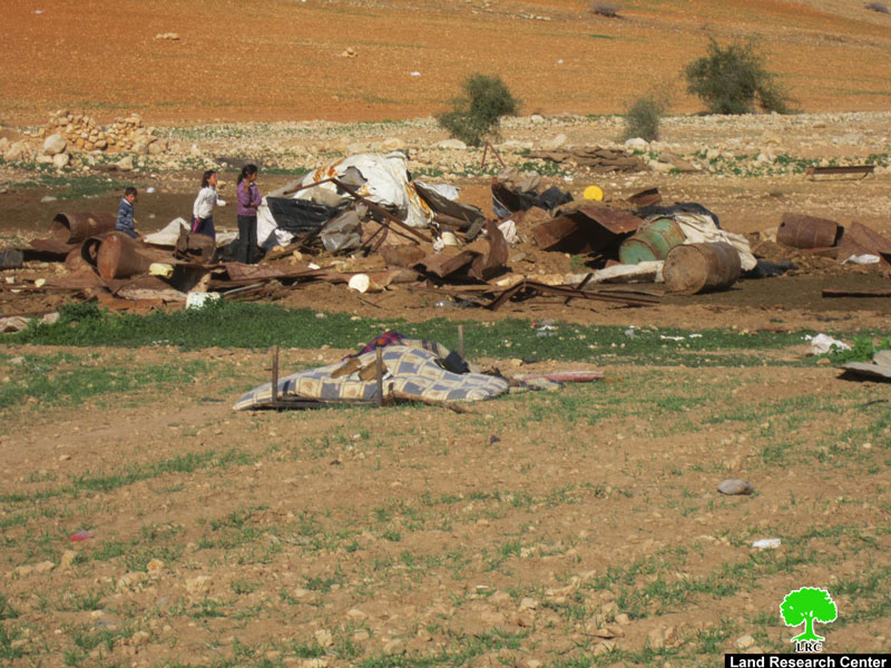 The Jordan Valley area is facing continuous discriminative acts perpetrated by the Israeli Occupation Authorities. Humsa has been the most recent target. On January 12, 2012, Israeli troops accompanied by a dozer broke into the dwelling and commenced a demolition campaign that hit a number of barns and sheds without even giving the chance for the owners to clear the contents of the structures which doubled the losses.