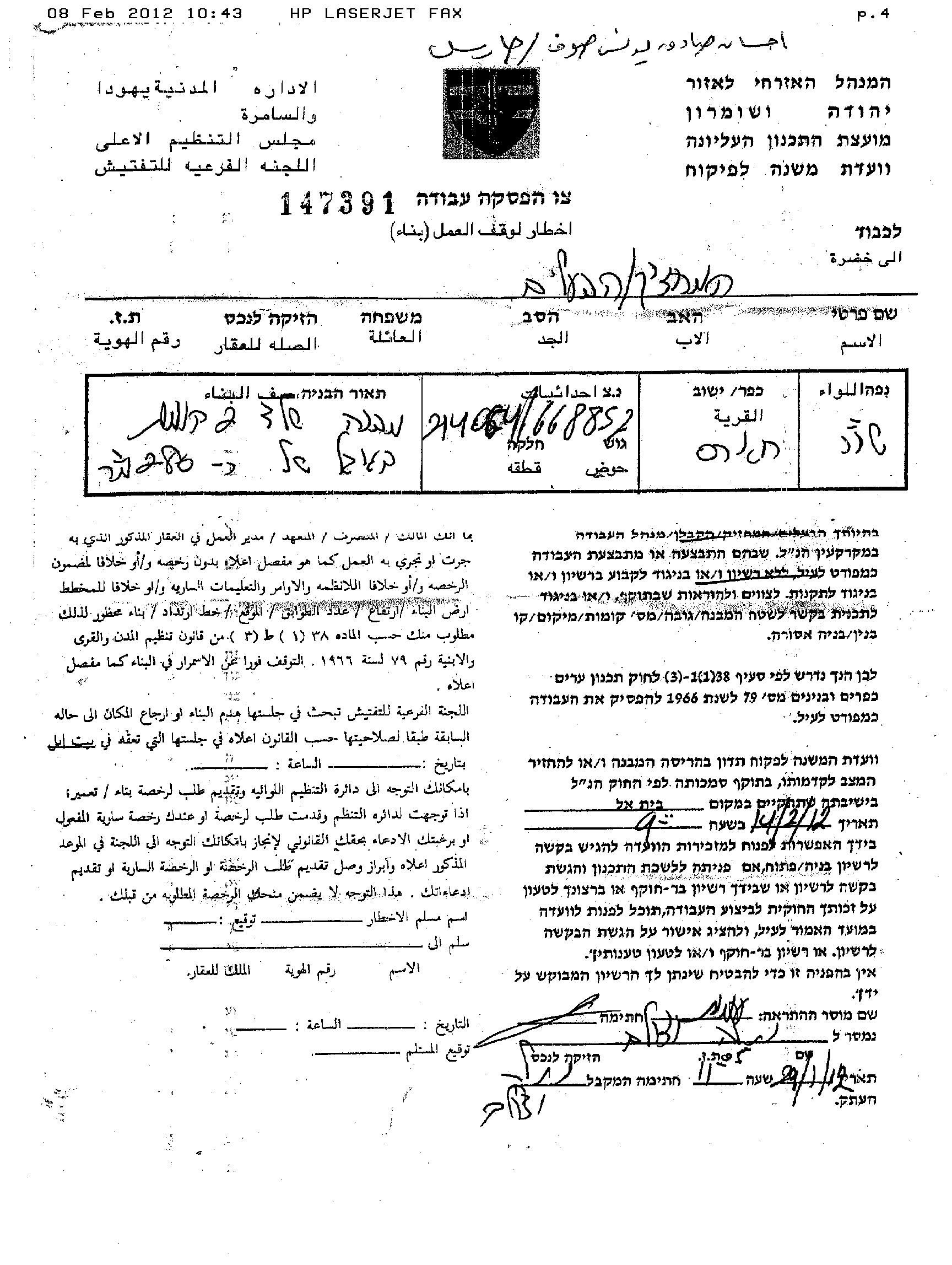 نسخ عن أوامر الهدم العسكرية الإسرائيلية
