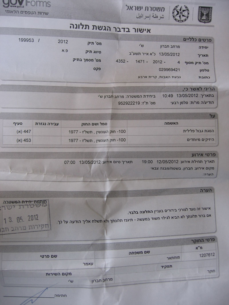وأشار ربعي أنهم قاموا بإبلاغ شرطة الاحتلال باعتداء المستعمرين على أراضيهم، حيث حضرت الشرطة والجيش إلى الموقع مصطحبين معهم قصاص أثر، حيث قام بقص الأثر من أراضيهم باتجاه مستعمرة ‘ ماعون ‘ وأشار إلى أن قصاص الأثر تبين له ‘ وجود أثار لمستعمرين قدموا من المستعمرة باتجاه أراضيهم ثم عادوا إليها ‘. قال ربعي انه تقدم بشكوى لدى شرطة الاحتلال في مستعمرة ‘ كريات أربع ‘ حول هذه الحادثة، وان الشرطة زودته بكتاب حول الشكوى ولم تزوده بردها حول التحقيقات في هذه الحادثة.