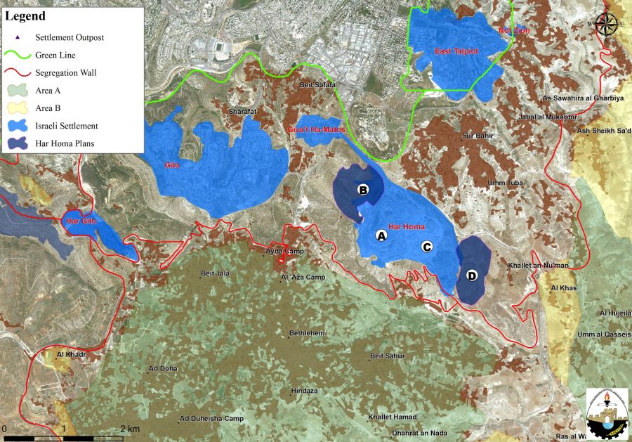 June 18, 2014: The Israeli Local Planning and Building committee  in Jerusalem approved a new plan to construct 172 housing units in the illegal settlement of Har Homa south of the city of Jerusalem and north of Bethlehem city. The newly approved housing units spread across several residential buildings, of seven to nine floors and each one will be between 36 to 50 units. Each building will cover an area of ​​2,661 to 3,800 square feet. See map of Har Homa settlement