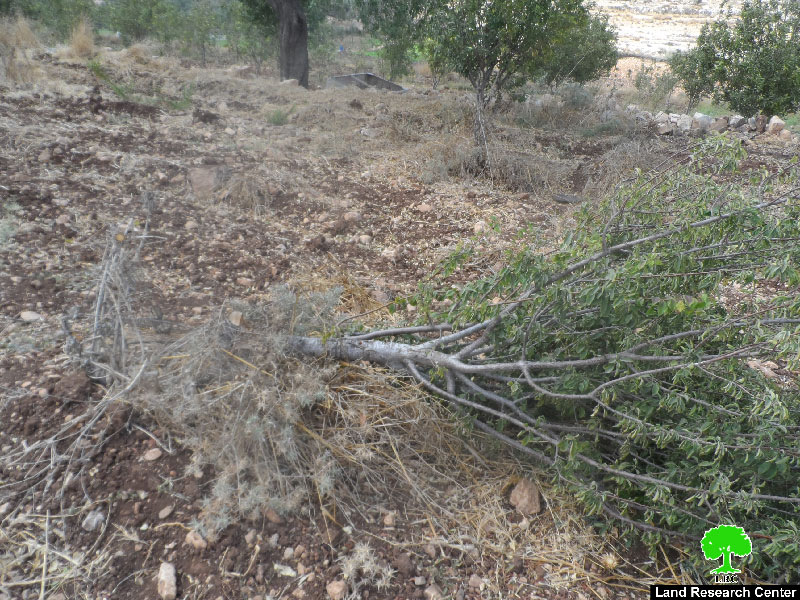 Colonists cut down 40 fruitful trees in Deir Nitham, Ramallah governorate