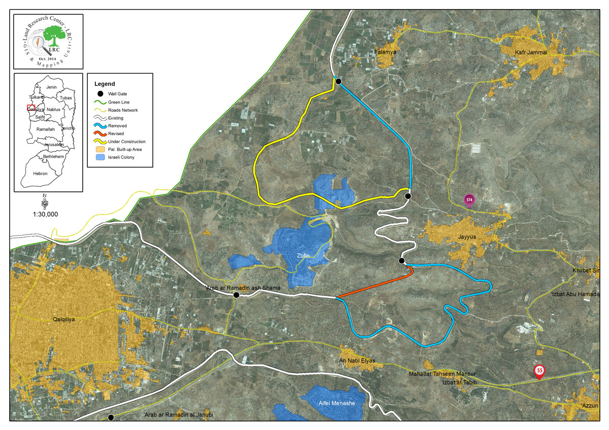 On January 18th 2013, the modification of the wall started and was represented in ravaging new areas for the sake of establishing a new modified segment to substitute the old one. The removed segment is of 3km from the northwestern side of Jayyous. As a result, 80 dunums were left damaged after the removal.