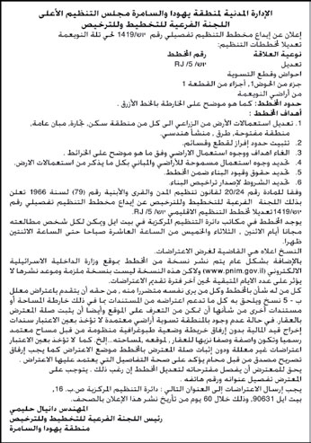 It should be marked that the Inspection Sub-Committee of Israel Civil Administration deposited on August 27, 2014 three master plans at the expense of Nuwei'ma lands. According to the advertisement, the master plans gave lands owners a 60 objection period. Another three similar master plans were advertised by the same side on 10/09/2014. The following table shows information about the master plans :