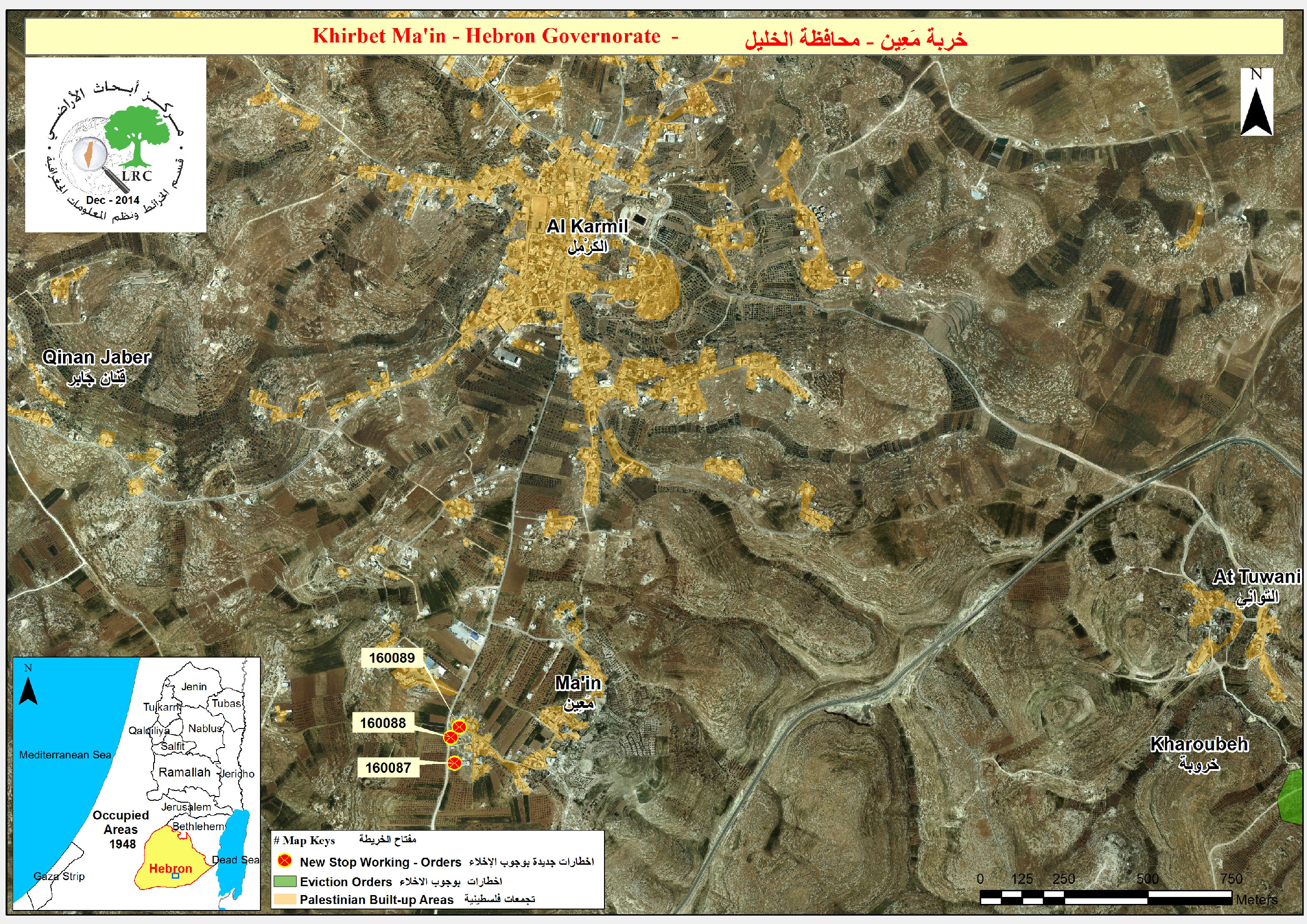 The military orders mentioned that the structures were unlicensed construction and compelled immediate termination of work. December 03,2014 was assigned for the so-called Planning Committee hearing session in the court of Beit El to consider whether to demolish the structure or restore its status quo.