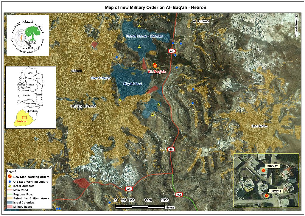 بات الهدم يتهدد منزل المواطن بلال عزمي عبد العزيز ابو عودة جابر في منطقة البقعه شرق الخليل، بعد أن سلمته سلطات الاحتلال الإسرائيلي إخطاراً بعنوان " إعطاء فرصة إضافية لتقديم اعتراض على قرار الهدم " الذي صدر بحق منزله بتاريخ (14/2/2008). وأوضح جابر أن سلطات الاحتلال كانت قد وجهت له إخطار الهدم في العام 2008، وقام بتوكيل احد المحامين للتقدم بالاعتراض على إخطار الهدم، إلا انه تفاجأ بتاريخ (29/11/2015) بتوجيه الإخطار الأخير لمنزله، وإمهاله مدة (3) أيام من تاريخ صدور الإخطار الأخير للتقدم بالاعتراض على قرار الهدم.