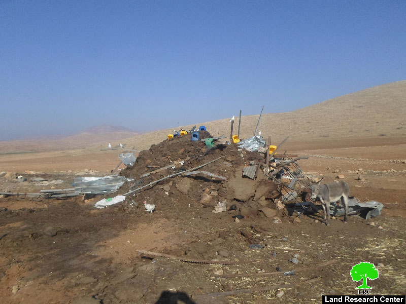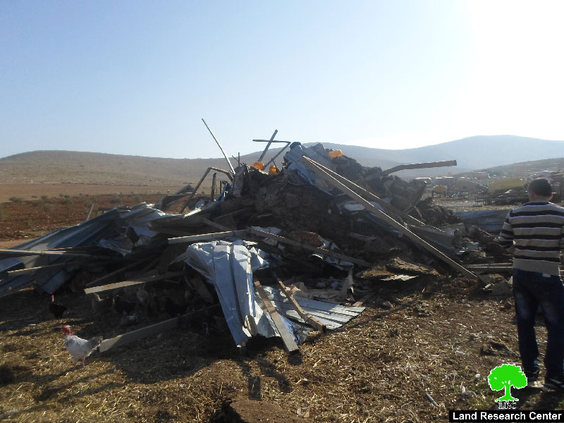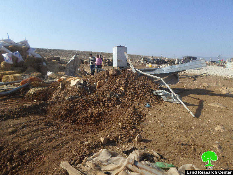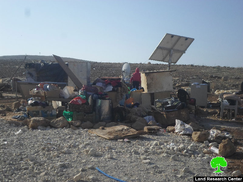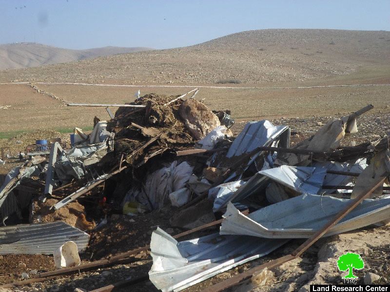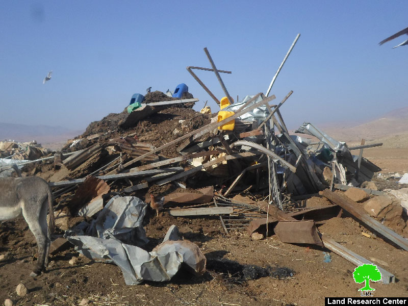 يذكر ان جيش الاحتلال لم يكتف بهدم مقطع من الطريق الزراعية المؤدية إلى خربة الحديدية، ففي صباح يوم الأربعاء 25 تشرين الثاني 2015م شرعت ثلاث جرافات عسكرية تابعة للاحتلال الإسرائيلي بتنفيذ عملية هدم واسعة للتجمع البدوي حيث طالت عمليات الهدم 4 مساكن ومضافة و 10 بركسات زراعية و 4 حظائر للأغنام تعود في ملكيتها لأربع عائلات مكونة من 28 فرداً من بينهم 9 أطفال.