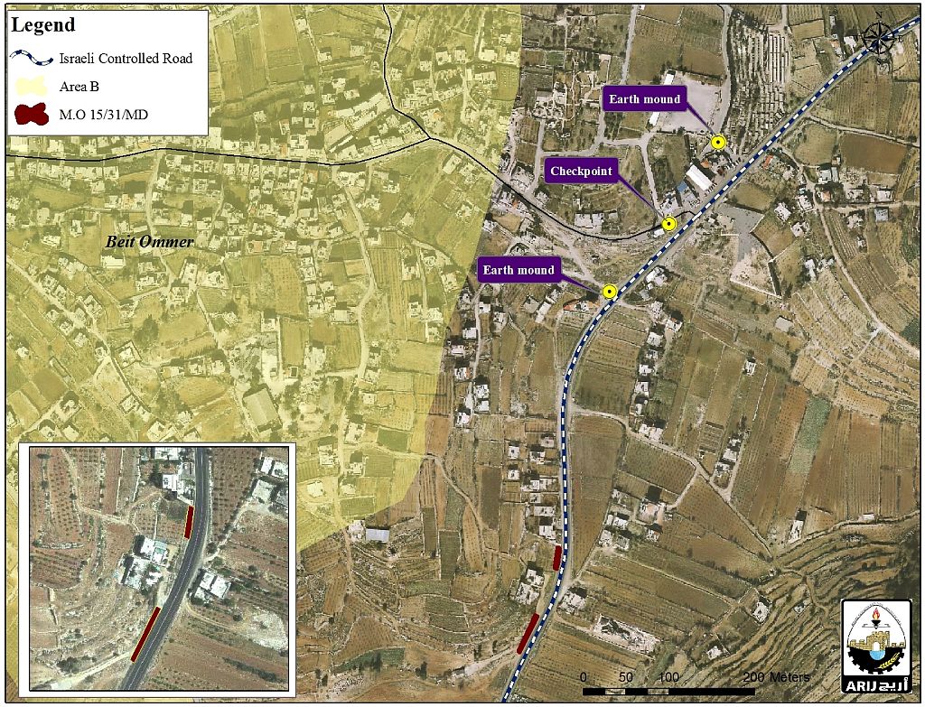 وبحسب الامر العسكري الاسرائيلي الصادر, فانه سوف يتم اقامة الجدار الشائك على مقطعين, الاول يبلغ طوله 48 مترا، فيما يبلغ طول المقطع الثاني 26 مترا تقريبا، على جانب شارع القدس-الخليل (الشارع الالتفافي رقم 60) باتجاه بلدة حلحول ومدينة الخليل. انظر الخارطة