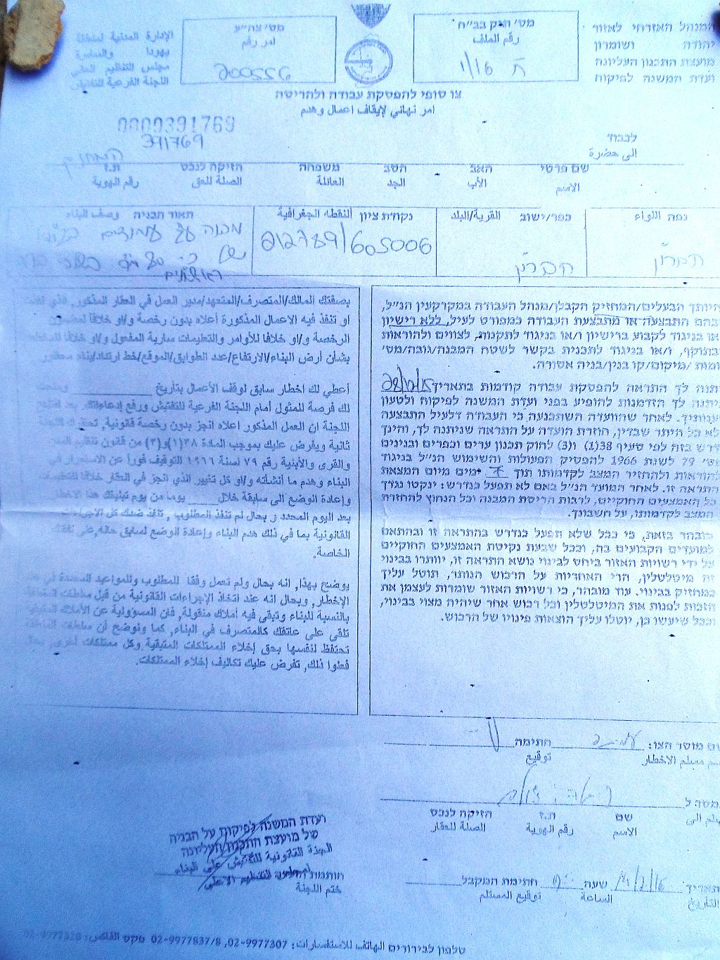 الصورة 5: إخطار هدم منزل المواطن نمر جابر