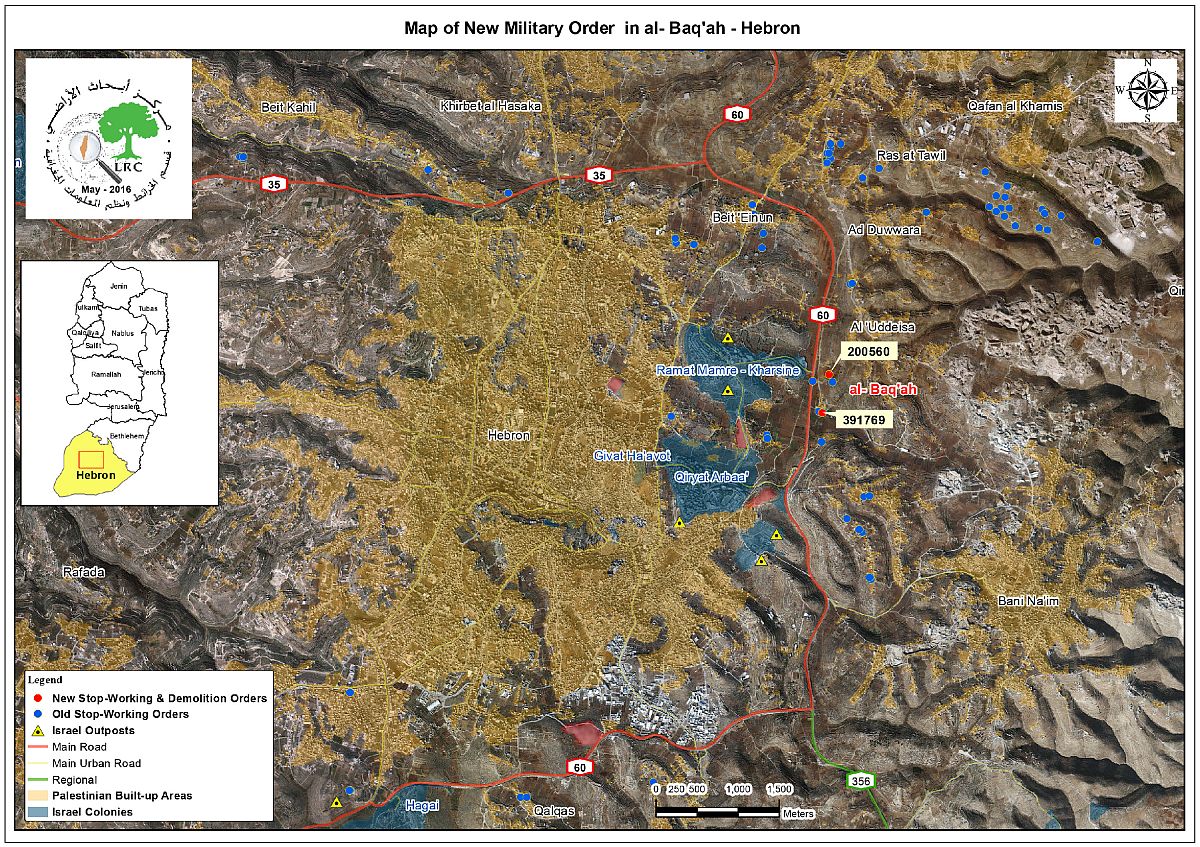 وجهت سلطات الاحتلال الإسرائيلي، بتاريخ 14/2/2016م، إخطاراً بوقف العمل والبناء وآخر بالهدم، بحجة البناء دون ترخيص، في منزلين بمنطقة البقعة شرق الخليل.