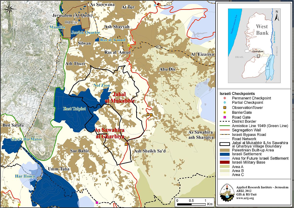 Map 1: Location Map of Jabal Al Mukkabir Town in occupied East Jerusalem