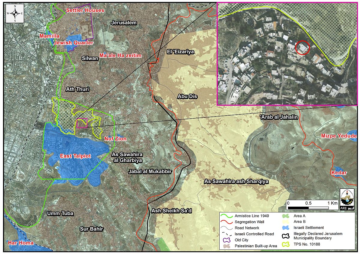 Map 1: Location of the Building claimed to be bought by El Ad Jewish organization in Jabal Al Mukkabir