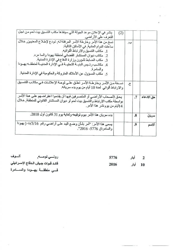 A previous military seizure order on the recently targeted lands: