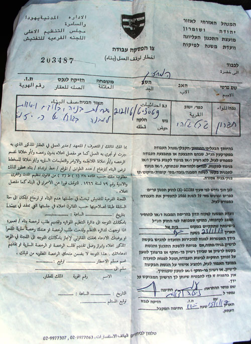 الصورة 6: إخطار وقف العمل في منزل المواطنة أبو ميالة