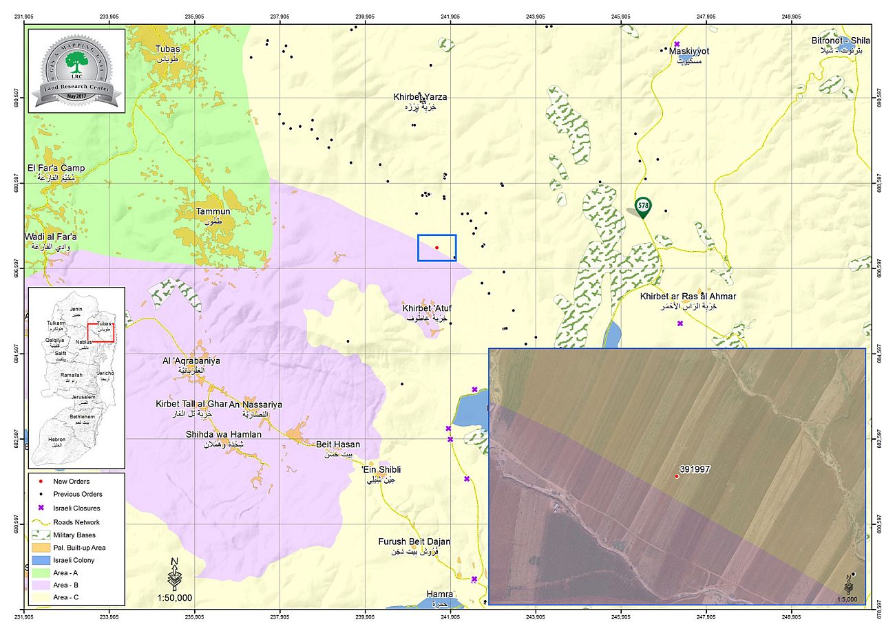 إن الاحتلال الإسرائيلي  سبق وان اخطر الخط الناقل بوقف البناء في 28 من شهر تموز من العام 2016م، حيث تم متابعة الأمر مع احد المحامين، لكن الاحتلال يصر على استهداف القطاع الزراعي هناك، ويرفض أي إجراء من إجراءات الترخيص هناك.  يذكر ان الاحتلال وفي نفس الآلية سبق وان اخطر العديد من خطوط المياه في منطقة البقيعة بوقف البناء بحجة عدم الترخيص، بالتزامن مع هدم مقاطع اخرى من نفس الخطوط خاصة تلك الخطوط التي تزود التجمعات البدوية بالمياه والممولة من خلال اليونيسيف.