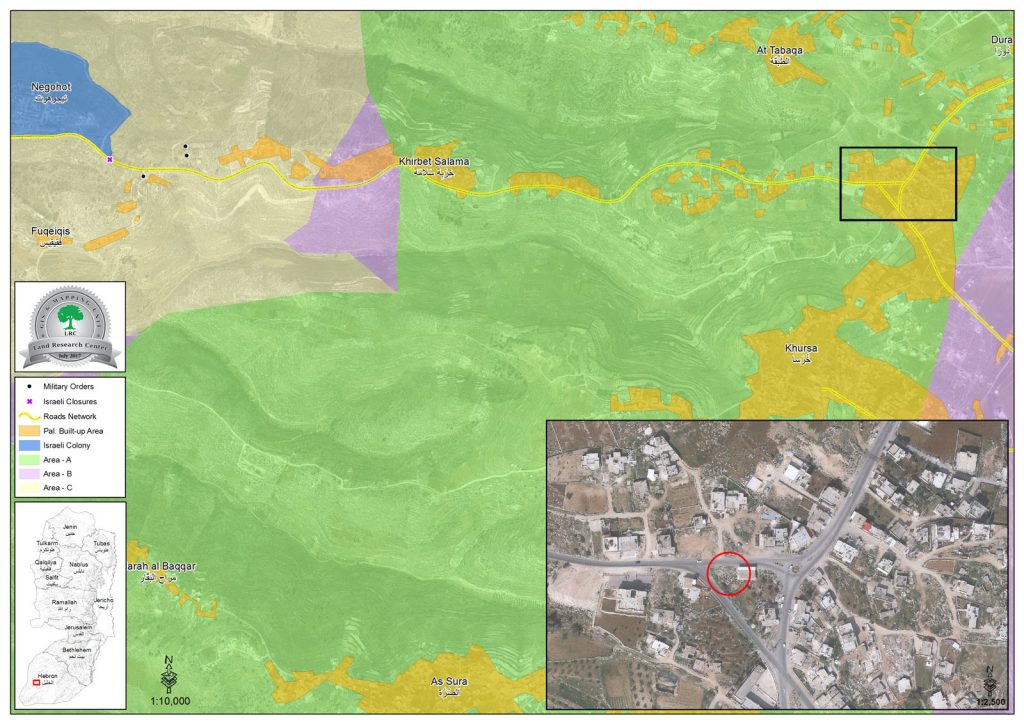 وكانت سلطات الاحتلال قد أصدرت الأمر العسكري ( 22/17/م د- أمر بشأن وضع اليد على أراضي)، وادعى فيه أنه لدواع أمنية مستعجلة سيتم وضع اليد على قطعة الأرض، كما تضمن الأمر العسكري صوراً جوية، توضح مكان القطعة التي سيتم الاستيلاء عليها، كما أظهرت بأن الاحتلال سيقيم أربعة حواجز على المفرق، ويتوقع بأن تكون هذه الحواجز بوابات حديدية ستقطع أوصال الطرق والتواصل ما بين القرى جنوب بلدة دورا.