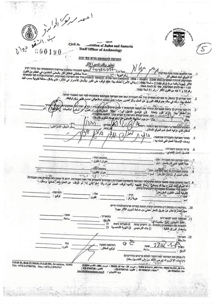 وادعت سلطات الاحتلال في الاخطارات الصادرة عن ( الإدارة المدنية – ضابط شؤون الآثار) وتحت عنوان ( تحذير وقف تدمير الآثار) بأن المباني قد شيدت على أماكن أثرية، وطالبت المواطنين بـ " إزالة المباني" خلال مدة (14) يوماً من تاريخ صدور الإخطارات، وهددت برفع دعوى ضدهم لدى شرطة الاحتلال.