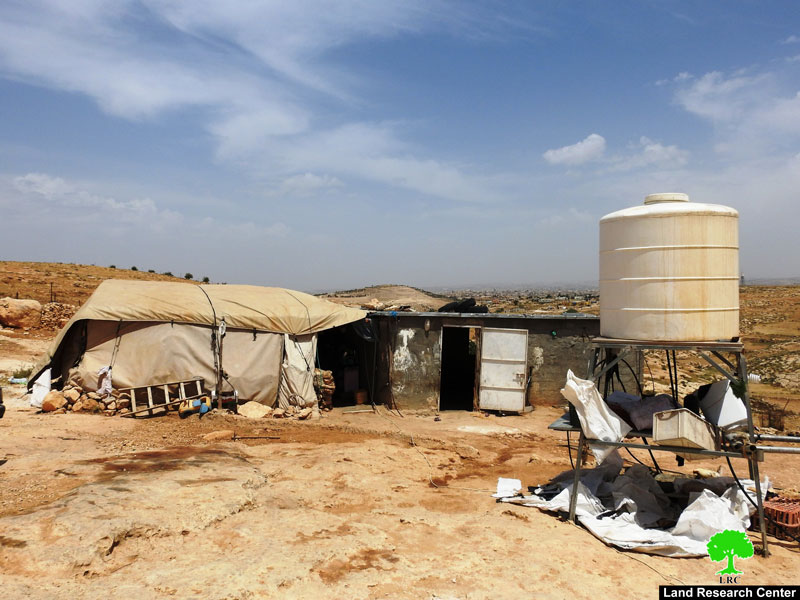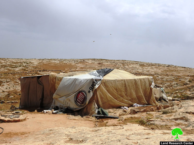 3- المواطن عبد الرحمن محمد الجبارين، تلقى إخطاراً بوقف العمل في خيمة زراعية مقامة على أعمدة حديدية ومغطاة بالشادر، تبلغ مساحتها (40 م2) كان قد أقامها في شهر نيسان 2018 للإقامة فيها في موسم الحصاد ورعي المواشي في أراضيه.