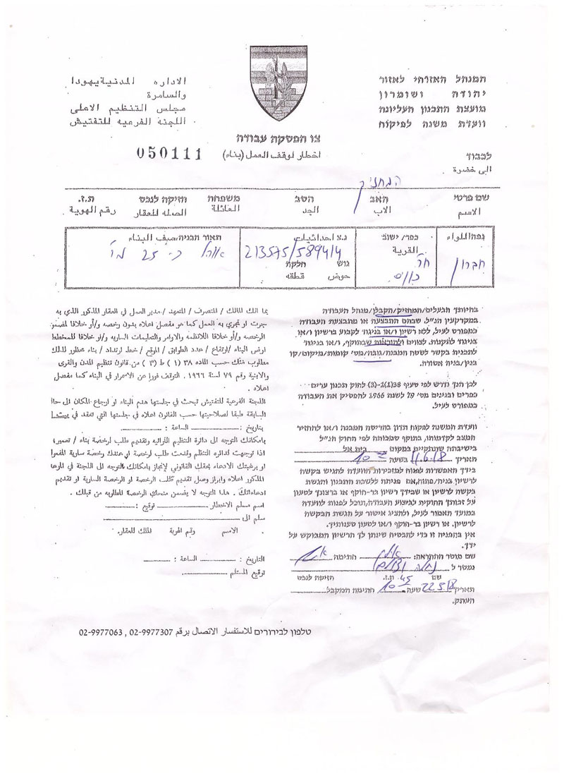 1- المواطن محمد إسحاق محمود الجبارين، حيث تلقى إخطارين استهدفا المنشآت التالية: