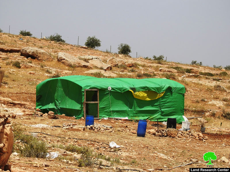 Affected citizens told Land Research Center that a vehicle relative to Israel Civil Administration accompanied by two military jeeps raided, toured around and hanged the orders on the targeted lands. Before the force had left, photos of the structures were taken.