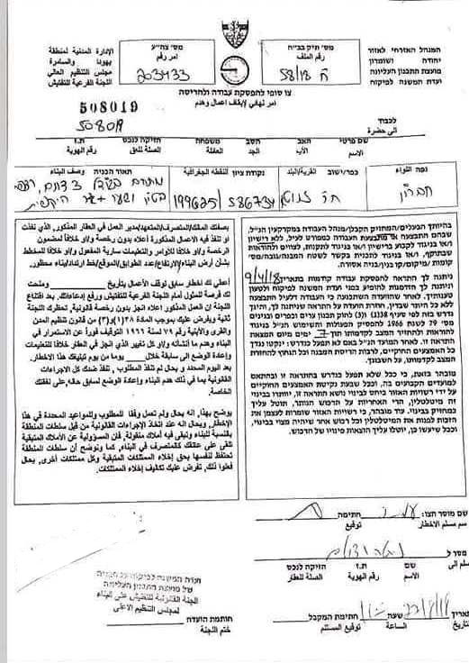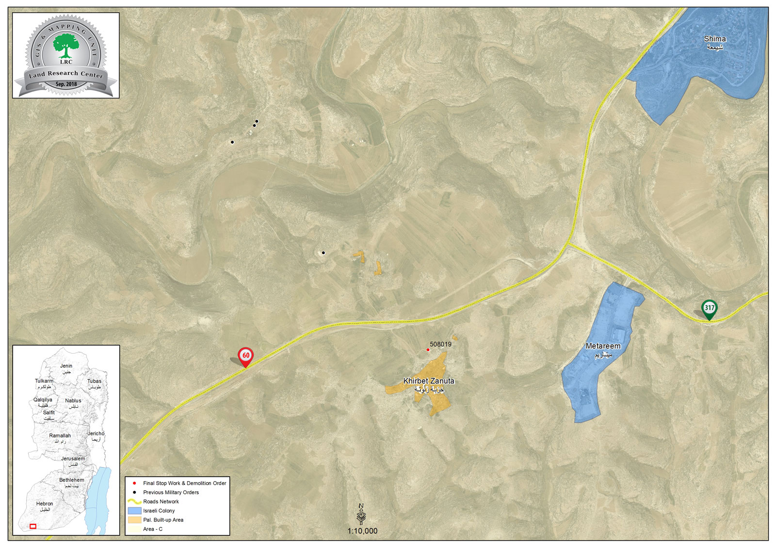The Israeli occupation forces issued a final demolition order on Zanuta hamlet school in Adh Dhahiriya- Hebron governorate, eyewitness said that a vehicle from the Israeli occupation civil administration raided the hamlet, and the so called inspecting officer showed up, stock the final-demolition order on the school’s wall, took pictures of it before leaving the location, the order requests to demolish the school within 7 days, in case of passing the deadline the occupation will carry out the operation on the owner’s expense.