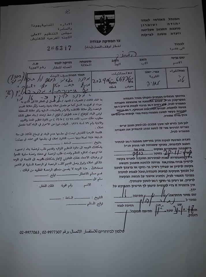 • الجهة المعتدية: ما تسمى لجنة البناء والتنظيم التابعة للاحتلال الإسرائيلي.