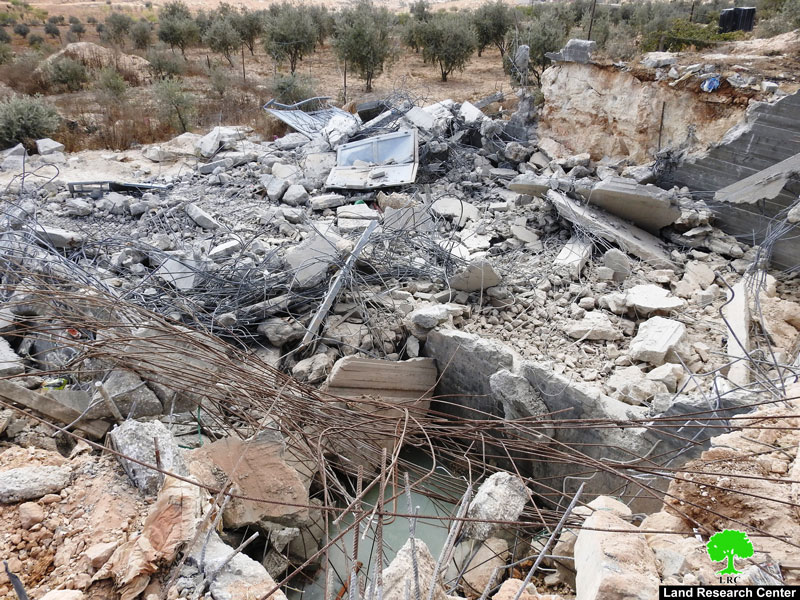 Wednesday, 17 October, The occupation’s bulldozers demolished a house and a water cistern owned by villager Mahmoud Abu Tah, from Khalet Al Mayeh North Yatta / Hebron.